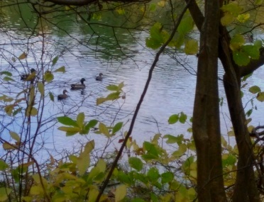 ducks and geese gather.