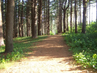 With your attention to the right, trying to catch a view of the water, you will most likely miss a very narrow hiking trail leading off to the left. This is the longest of actual hiking trails on the property, but is has not been maintained in a while.