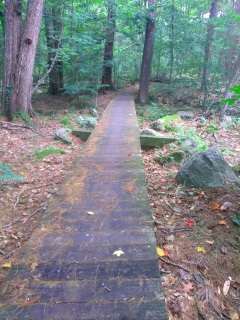 The two trails at marker S19 on Union St start with boardwalks.At just under 1/2 mile there will be a "S19" marker to the right and two boardwalk trails. Either of these trails can be used as an alternate hiking route back to the campground.