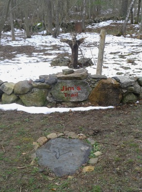 At .53 the intersection with Jim's trail's end. A low stone wall to mark the intersection.