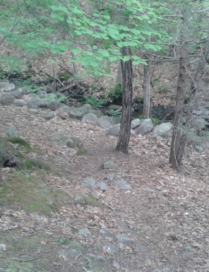 After this second intersection you will pass through a stone wall and shortly thereafter a narrow hiking trail will lead to the left at .62 miles.
